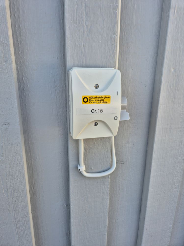 Säkerhetsbrytaren köptes hos Rexel Täby, där Mattias själv plockade den direkt från hyllan. Han hade sett den tidigare och känner till att den även finns i fyra diskreta färger.