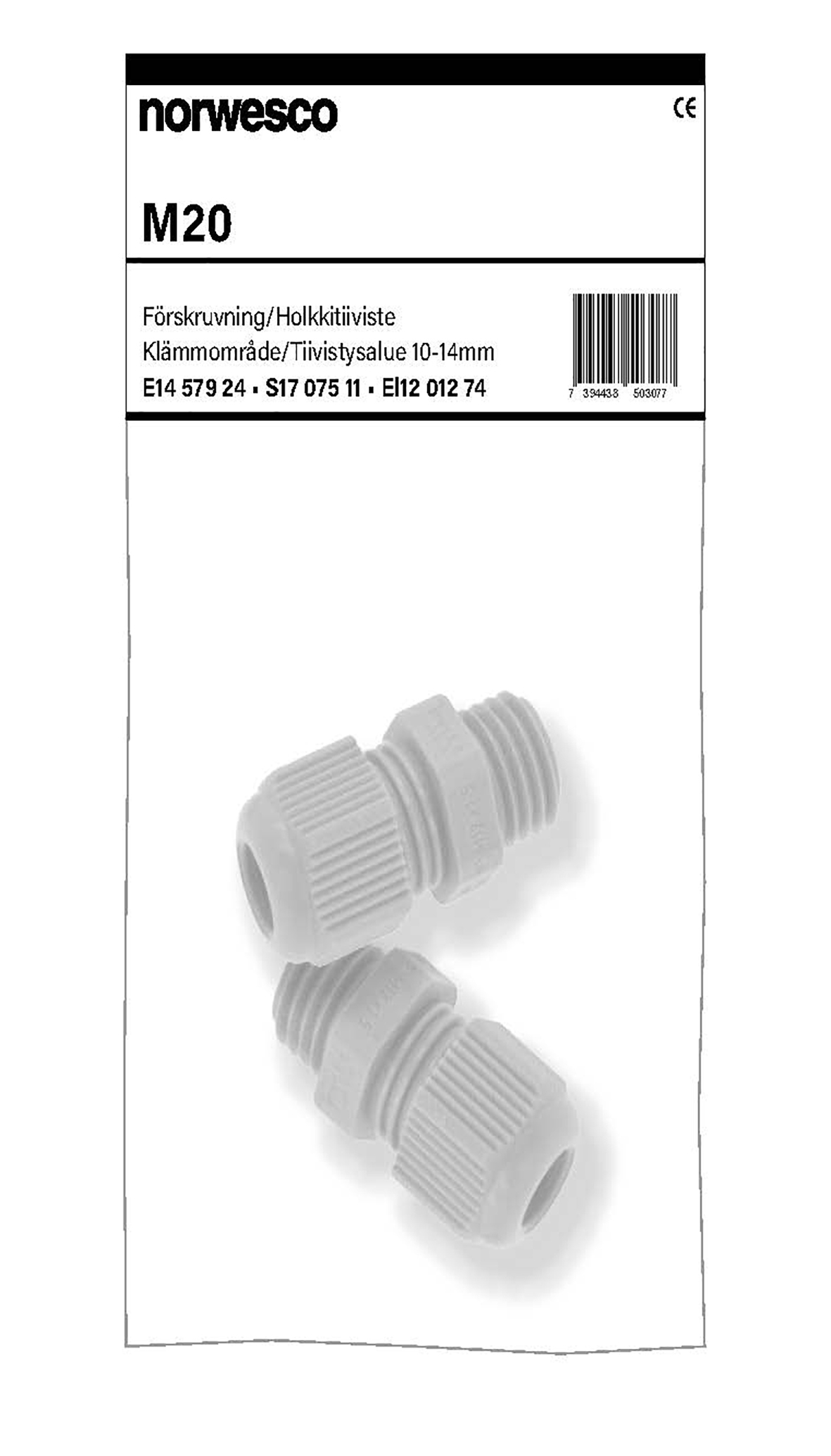 Kabelförskruvning 2-pack i påse M20 10-14mm