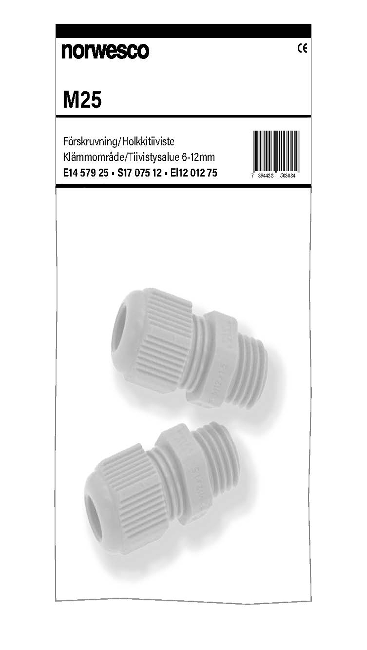 Kabelförskruvning 2-pack i påse M25 6-12mm