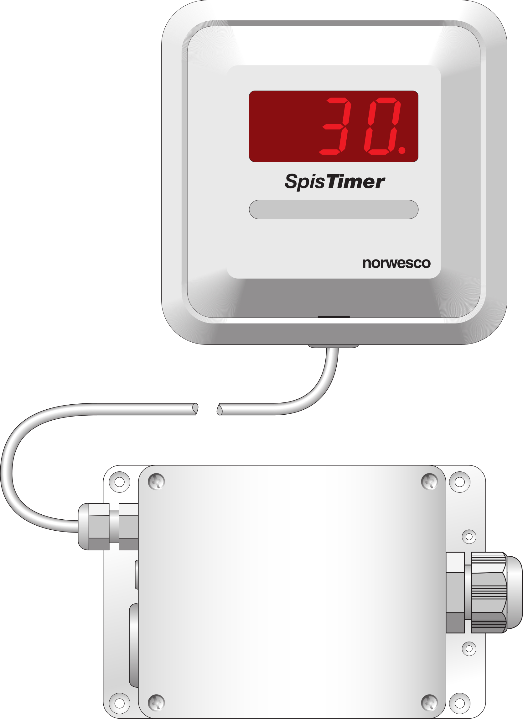 Med Norwesco skyddstimer för spisar kan du nu erbjuda dina kunder en lösning som inte dominerar köksmiljön. Eftersom skyddstimern består av två delar uppnås en större flexibilitet än hos traditionella skyddstimers. Styrenheten behöver inte placeras rakt ovanför spisen, och den smala ledning (2,3 m) som förbinder styrenheten med anslutningsdelen tvingar inte ut spisen från sin ursprungliga plats utan får lätt plats mellan spis och omgivande inredning.